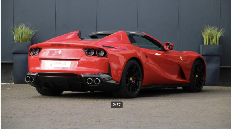 Eerlijk is eerlijk: een Ferrari in de typische rode kleur blijft dik – zo niet het dikst. Deze rode rakker kost €524.950 en heeft zelfs nog een fabrieksgarantie tot 27 april 2025. Net als bij de andere Ferrari kan het dak open, en met een vermogen van 799 pk zou hij zomaar familie van nummer drie kunnen zijn.